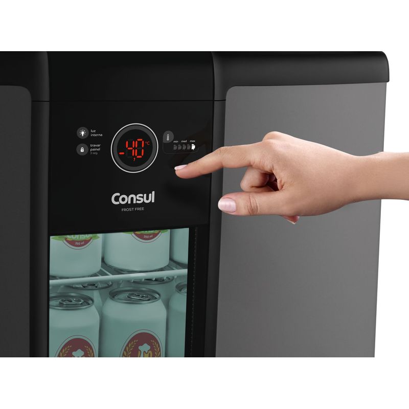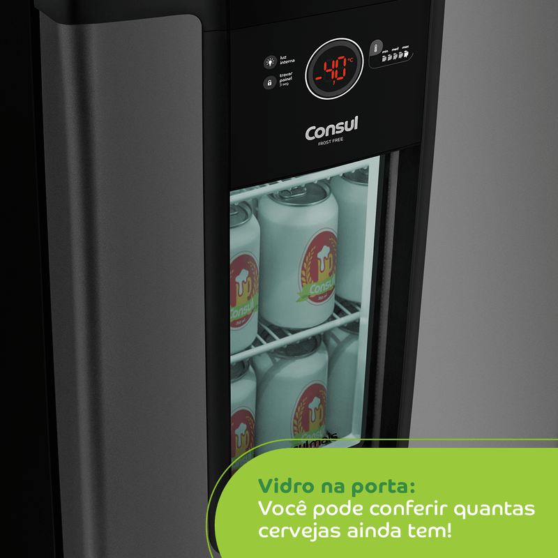 O painel digital na porta indica a temperatura programada, enquanto a janela de vidro permite conferir quantas bebidas ainda restam sem precisar abrir a porta. Além disso, o sistema Frost Free elimina a necessidade de descongelar, tornando o uso ainda mais prático. Com tudo isso, sua única tarefa será reunir os amigos e aproveitar cada momento!
