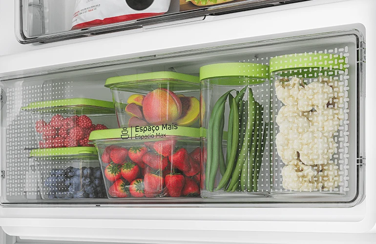 Mais espaço significa mais possibilidades de movimentar os alimentos dentro da geladeira, saber o que está perto da data de vencimento e maior variedade alimentar para a sua casa.