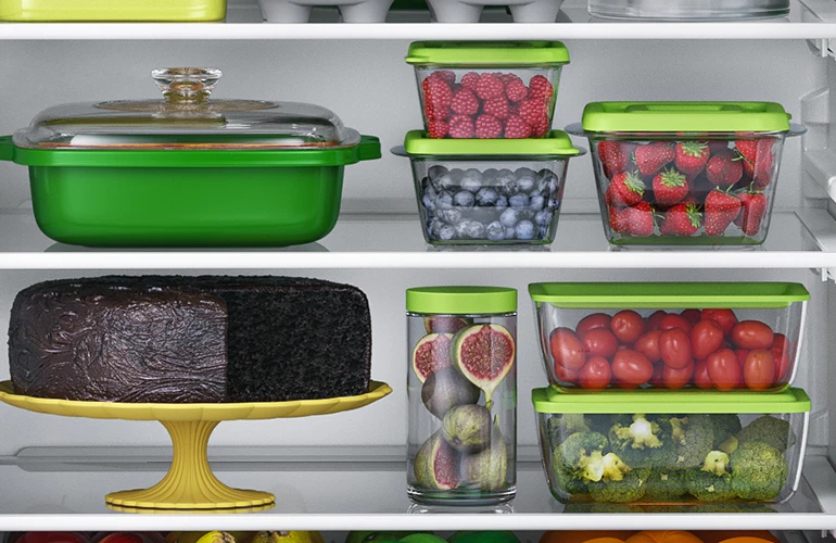 A primeira prateleira pode ser um bom local para guardar sobras de alimentos, leites, ovos e manteigas. Isso porque é um local que apresenta uma temperatura baixa e sem oscilação, o que não compromete a qualidade do alimento.