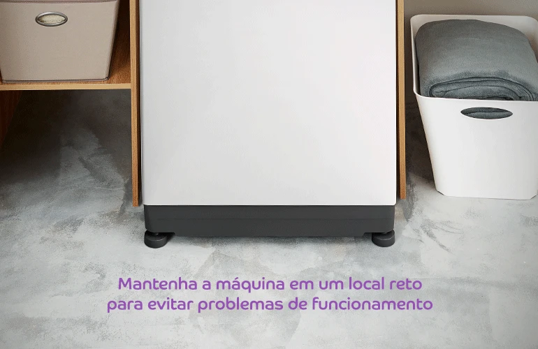 Fora isso, um problema bastante comum é deixar a sua lavadora desnivelada. A maioria dos modelos atuais possuem uma regulagem independente em cada um dos pés. Assim, você consegue identificar se a sua máquina de lavar está pendendo para um lado e regular somente aquela região. Outro ponto é garantir que a sua máquina fique em um lugar reto. Se o local for uma descida, por exemplo, a água lá dentro pode pender para o lado e desnivelar o peso interno, na hora da lavagem.