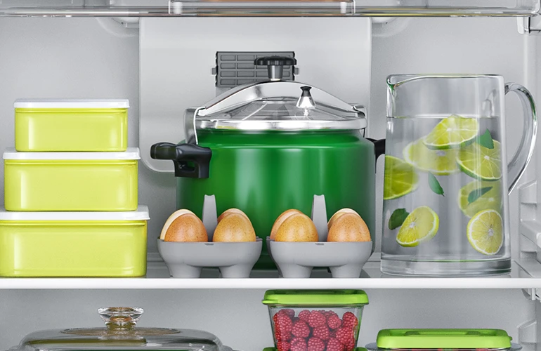 Alimentos que estão na embalagem não precisam ser colocados em potes, como iogurtes, frios que estão fechados e também os legumes. No entanto, comidas prontas ou ingredientes que já foram abertos devem ser colocados em potes com tampa ou plástico filme. Nunca deixe uma embalagem aberta dentro da geladeira, pois o alimento que estiver dentro dela pode absorver o cheiro de outro alimento.