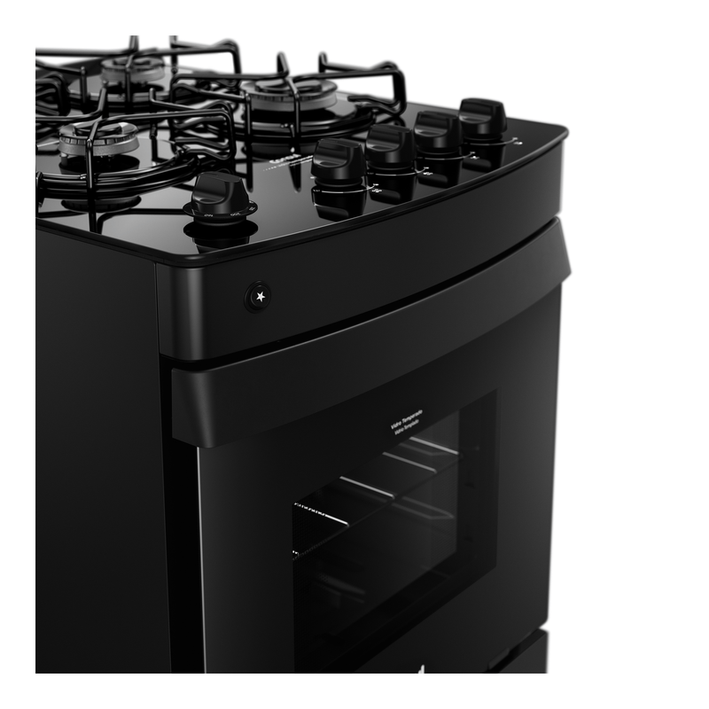 Fogão 4 Bocas Preto Consul com Mesa de Vidro - CFO4VCE