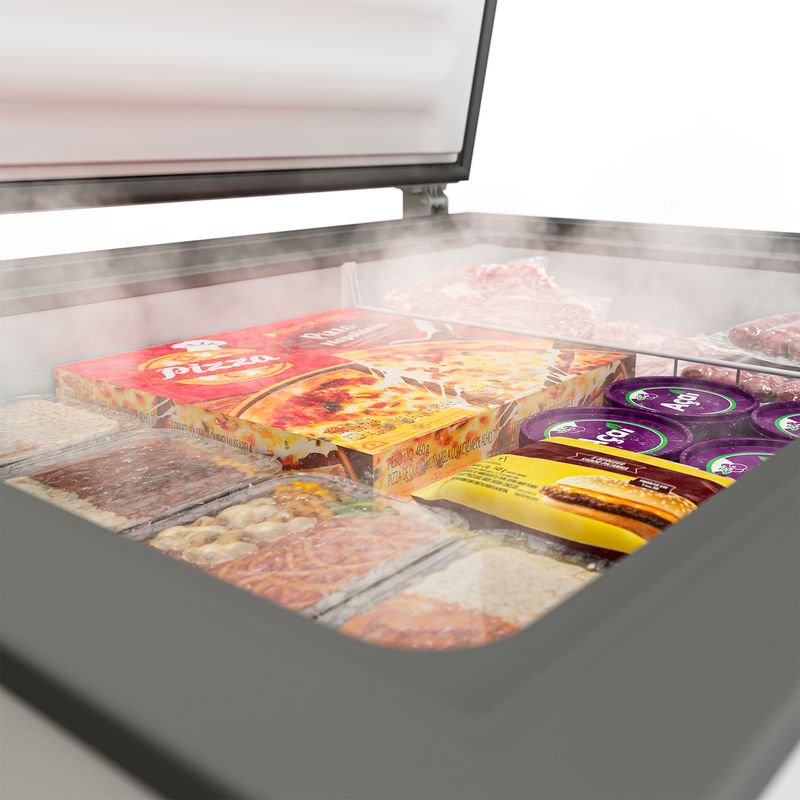 O Freezer Horizontal CHA31 307 litros é a escolha ideal para quem busca eficiência energética¹ e alto desempenho no armazenamento de alimentos. Com a Função Super Frio², acelera o resfriamento e atinge temperaturas mais baixas rapidamente, ideal para conservar carnes, bebidas e congelados. Possui 5 níveis de temperatura, variando de 3°C a -23°C³, com ajuste externo prático, sem precisar abrir a porta. Conta ainda com rodinhas e pés reguláveis, facilitando a movimentação e instalação em qualquer ambiente. Seu interior é resistente à corrosão, garantindo maior durabilidade. O modelo inclui fechadura com chave, dreno frontal para facilitar a limpeza e grade organizadora, proporcionando mais segurança e organização. Além disso, é um freezer econômico e sustentável, que não agride o meio ambiente nem a camada de ozônio4.