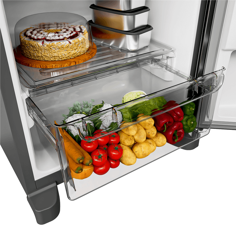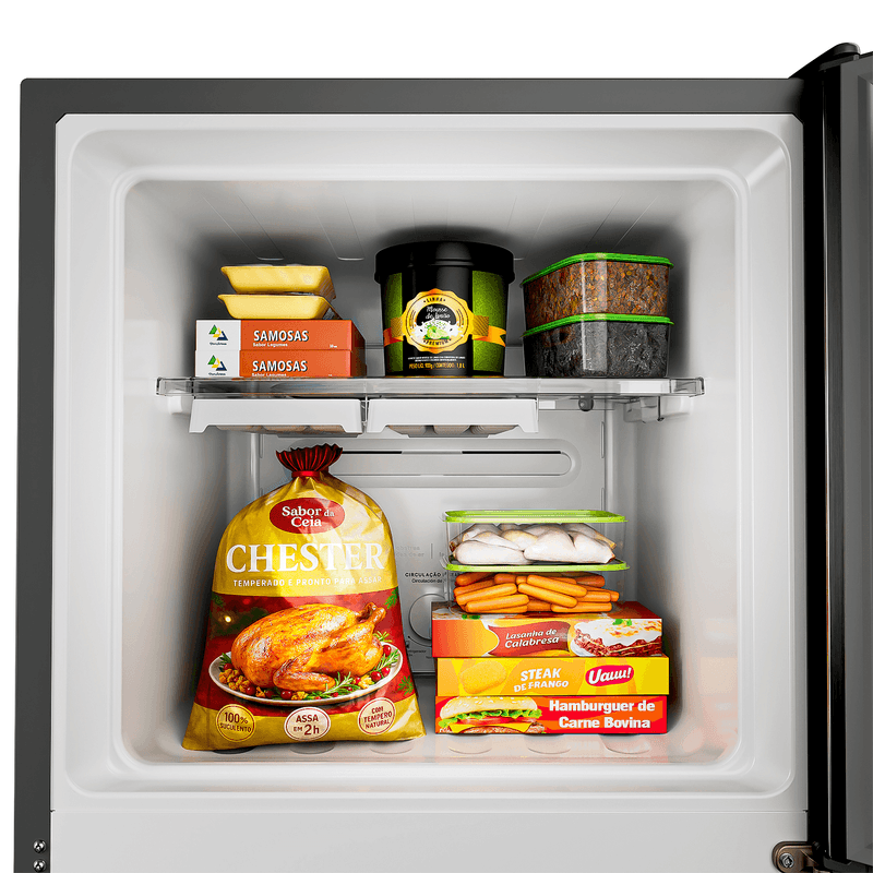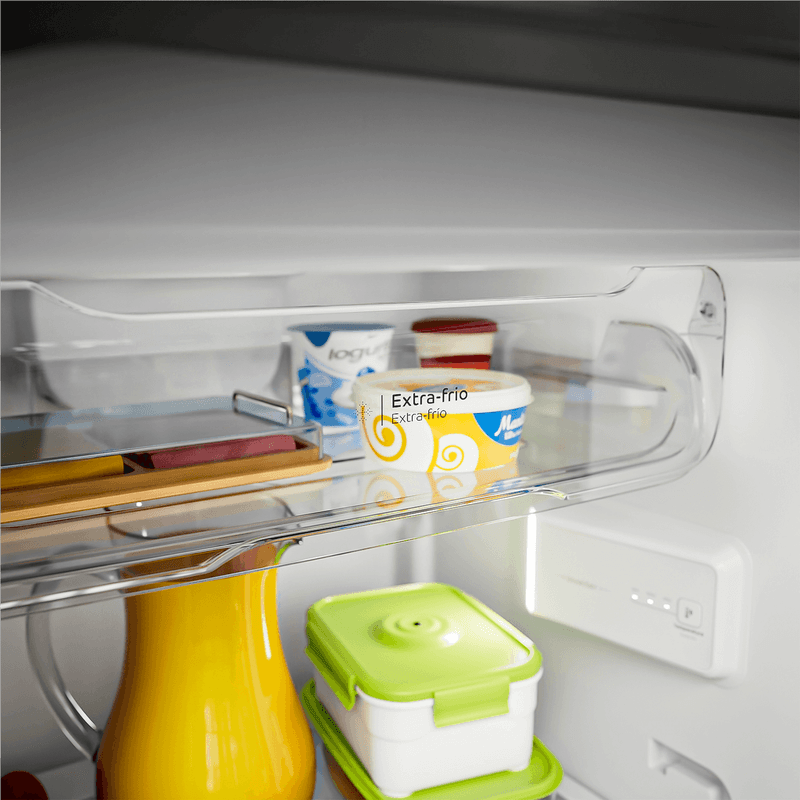 A Geladeira Consul Frost Free de 377 litros com Tecnologia Inverter é econômica, silenciosa e altamente eficiente, ajudando a reduzir o consumo de energia e mantendo os alimentos frescos por mais tempo, sem necessidade de descongelar. O freezer espaçoso facilita a organização dos congelados, oferecendo mais praticidade no dia a dia. Já as prateleiras ajustáveis em até quatro níveis permitem armazenar desde alimentos maiores, como melancias inteiras, até garrafas de 2 litros com facilidade. A Função Turbo acelera o resfriamento, mesmo quando a geladeira está cheia, e o espaço Extra-Frio é ideal para frios e laticínios. Com iluminação em LED de baixo consumo, gavetão para frutas e legumes, porta-ovos e formas de gelo suspensas, tudo fica bem organizado e fácil de encontrar.