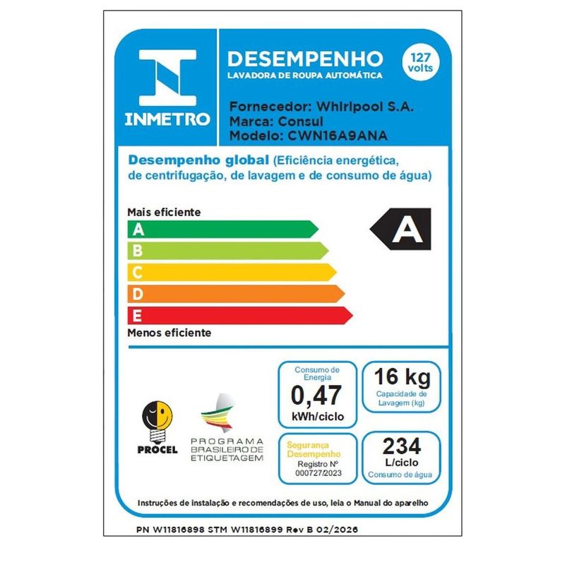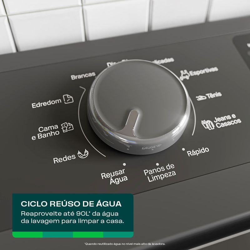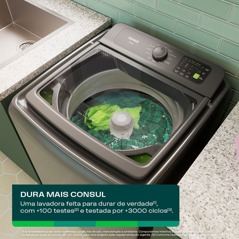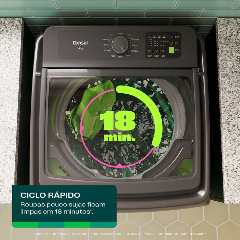 A Máquina de Lavar Consul 16kg Cinza Chumbo foi projetada para quem busca transformar a lavanderia em um espaço de praticidade e estilo. Com um design moderno e sofisticado, esta lavadora não apenas embeleza o ambiente, mas oferece a robustez necessária para lidar com grandes volumes de roupa, incluindo edredons e cobertores pesados. Para quem prioriza o consumo consciente, a Consul traz tecnologias que impactam diretamente no bolso: Modo Eco: Ao selecionar esta opção em qualquer ciclo, você garante uma economia de até 15% de água e 40% de energia elétrica, sem perder a performance de limpeza. Função Mais Secas: Ideal para dias úmidos, essa função prepara as peças para que fiquem menos tempo no varal, agilizando a rotina doméstica. Durabilidade Comprovada: A marca reforça o compromisso com a qualidade através de mais de 100 testes rigorosos, garantindo um equipamento testado por mais de 3.000 ciclos de lavagem. Além da alta capacidade, a versatilidade dos ciclos permite lavar desde roupas delicadas até os jeans mais sujos de forma simples e intuitiva. É a escolha perfeita para famílias grandes que não abrem mão de uma lavagem eficiente e um excelente custo-benefício. Se você busca uma máquina de lavar que une durabilidade, economia e tecnologia de ponta, o modelo CWN16A9 é a solução definitiva.